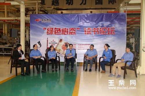 11月27日,玉柴股份五发厂的生产车间散发着浓浓的书香,玉柴集团“绿色心态”读书论坛在这里举行,来自各基层单位的150多人共同分享阅读的快乐。玉柴集团公司副总裁关敏、党委副书记郭德明,玉柴股份总经济师覃小红等公司领导应邀出席读书论坛。
