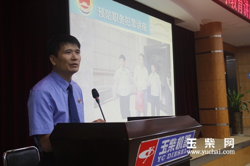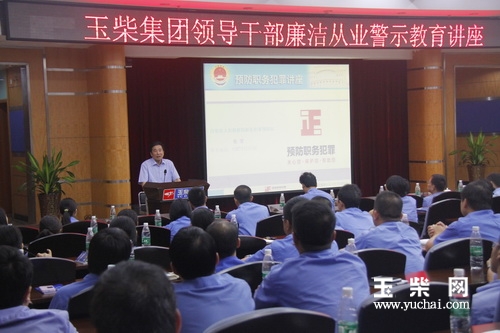 为进一步加强领导干部廉洁从业教育,增强领导干部廉洁从业观念,筑牢领导干部拒腐防变的思想道德防线,10月15日,玉柴集团举办领导干部廉洁从业教育讲座,特邀自治区人民检察院职务犯罪预防局局长张坚为领导干部作“预防职务犯罪”专题教育。玉林市人民检察院副检察长林伟,玉林市人民检察院职务犯罪预防局局长黄红坚、副局长欧阳梅等领导陪同活动,集团中高层领导干部共计170多人参加了学习。