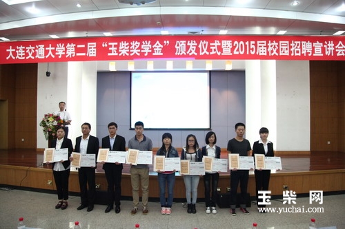 9月26日,在大连交通大学本部,38名学生代表接过了由玉柴集团公司副总裁关敏、大连交通大学校长助理赵文春等颁发的“玉柴奖学金”。