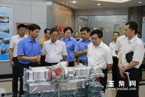 会前,庞秀生一行参观了玉柴重工生产车间和玉柴股份五发厂、产品展厅,观看了玉柴集团宣传片。参观过程中,古堂生向庞秀生介绍了玉柴的发展历程、业务发展情况、产品市场情况及生产工艺等。