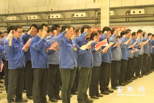 3月7日,玉柴技师代表近200人积极响应公司深化精益制造的号召,在二发厂4F车间举行“决胜2013年质量与生产目标暨精益行动”誓师表决心活动,决心全力提质量、保产出,确保完成2013年任务。