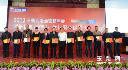 大会还表彰奖励了2012年为玉柴润滑油发展作出杰出贡献的先进企业单位,共颁发34个“重大贡献奖”、6个“终端大客户开拓奖”、6个“渠道建设奖”和46个“精诚合作奖”等奖项。