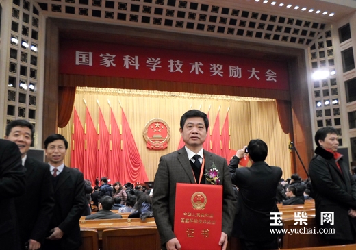 中共中央、国务院1月18日在北京人民大会堂举行2012年度国家科学技术奖励大会。此次共授国家最高科学技术奖2名、国家自然科学奖二等奖项目41项、国家技术发明奖项目77项、国家科学技术进步奖项目212项。玉柴股份公司《节能环保型柴油机关键技术及产业化》项目获得国家科学技术进步奖二等奖。玉柴集团公司总工程师、该项目第一完成人沈捷代表玉柴领奖。这是玉柴首次获得国家科学技术进步奖。