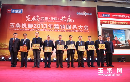1月15日,玉柴机器2013年营销服务大会在杭州举行。大会以“突破、抢先、协同、共赢”为主题,全面总结了广西玉柴机器股份有限公司2012年市场营销和服务工作,介绍了2013年重点技术和产品,提出了2013年47万台发动机销量目标,发布了玉柴服务战略规划。