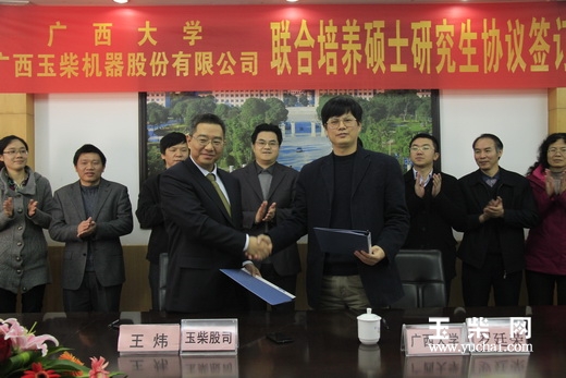 据了解,此项协议规定,校企双方同意将玉柴股份公司作为广西大学研究生教学和科研的实践基地。玉柴股份公司采取学校推荐、学生自愿和择优录用的原则,从广西大学动力机械及工程、热能工程、机械类专业中选拔研究生进行培养。参与联合培养的研究生集中第一学年在广西大学修完培养计划规定的课程和学分,从第二年开始,到玉柴股份公司以课题方式进行培养,直至完成毕业论文。玉柴股份公司每年接受联合培养研究生5-10名,对毕业后有意向到玉柴股份公司工作并签订工作协议书的研究生发放励学金每人4000元/期,负责研究生在玉柴股份公司实践和做课题期间的研究费用,提供住宿,并给予必要的生活补助(1200/月)和劳保福利。对接受培养的研究生实行双导师制,即一名企业导师、一名学校导师。企业导师由玉柴股份公司推荐具有丰富工程经历的高级工程师担任。