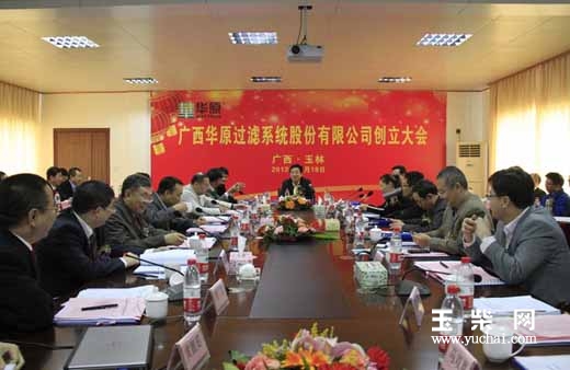 12月18日,广西华原过滤系统股份有限公司(简称华原股份公司)隆重举行创立大会,玉柴集团公司董事局主席晏平、总裁古堂生,新乡航空工业(集团)有限公司董事长录大恩,华盛滤清器(深圳)有限公司董事长梁子斌,肇庆市金粤创业投资有限公司董事长黄日雄,北京中金润合创业投资中心(有限合伙)田斯一女士等出席了大会。晏平在会上讲话并为华原股份公司揭牌。