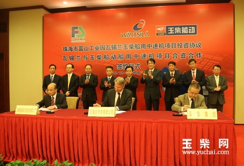 12月20日,玉柴与瓦锡兰再次相约珠海市,签订中速船机合资合作项目协议,联手打造中速船机珠海生产基地。瓦锡兰集团公司总裁比扬·罗森格林、玉柴集团公司副总裁苏朋、玉柴船舶动力股份有限公司(简称玉柴船动)董事长蒋世宏共同签署了瓦锡兰玉柴中速船机合资合作协议。广东省委常委、珠海市委书记李嘉,珠海市市长何宁卡,玉柴集团公司总裁古堂生等领导见证了签约仪式。