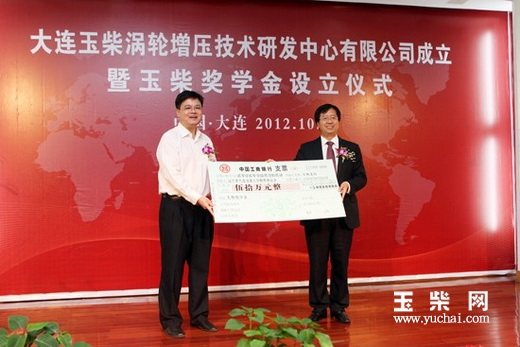 据了解,此次除与该校共同打造国内增压技术研究的高水准平台之外,玉柴还出资50万元设立“玉柴奖学金”,资助大连交通大学家庭困难的优秀学生顺利完成学业。周孙海向大连交通大学党委副书记刘玺明递交了“玉柴奖学金”支票。