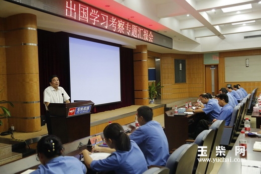 为学习和借鉴国内外的先进技术和经验,玉柴每年都会派出技术和管理骨干到国外学习取经,考察成果在公司内共享,以期共同提高。10月16日,玉柴股份公司召开了第64届汉诺威车展观展暨国外先进工厂考察汇报会。钟玉伟、钟晓波、陶泽民、苏怀林、肖建国、潘东分别代表轻型车整车配套、重型商用车配套、产品开发、零部件发展、供应商考察、生产工艺小组,共享了出国考察成果。