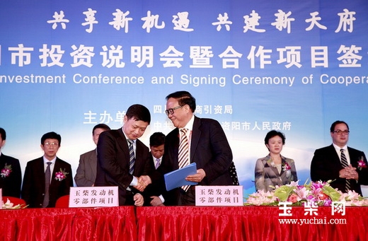 另悉, 十三届西博会开幕当日,资阳市在成都世纪城娇子国际会议中心隆重举行了“共享新机遇·共建新天府”——资阳市投资说明会暨合作项目签约仪式。南车玉柴公司董事长张正清作为受邀的100余家投资方企业家代表之一出席了会议,并在仪式现场与资阳市签署了“中高速发动机零部件项目建设投资协议书”。