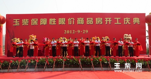 玉林市人大常委会副主任张福文、玉柴集团公司总裁古堂生、玉柴股份公司总经理吴其伟、玉柴集团公司董事局主席助理曾诗强等共同为玉柴保障性限价商品房项目剪彩。玉柴集团公司总裁古堂生宣布项目正式开工动土。玉柴集团公司党委副书记郭德明主持项目开工仪式。