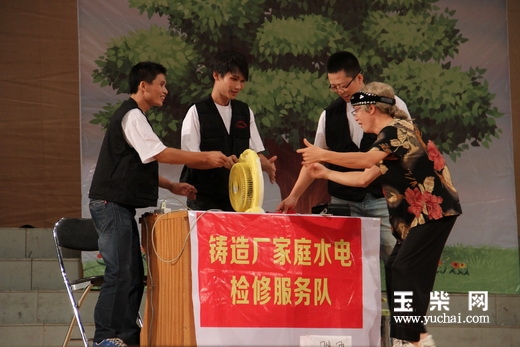 玉柴文化如一颗茁壮成长的大树,枝繁叶茂。表演大赛在玉柴老龄办助兴演出的舞蹈节目《你是一棵大树》中拉开序幕。接着上场表演的节目是来自工程研究院的情景剧《真心英雄》选取了三个典型的场景,一个是尽情歌唱的KTV包厢,一个是玉柴招聘干部与意向入厂的毕业生促膝谈心,一个是冰天雪地的试验台架,将工程研究院的技术精英们勤奋敬业、攻坚克难的无畏精神和洒脱性情全面地展现给观众,其出色的表演博得了现场观众阵阵掌声。由工艺装备厂表演的《模具大师的日记》通过艺术的手段再现玉柴首席模具大师陈金源攻克轿车柴油机模具,挑战国际高端模具设计制造技术难关的艰难历程和动人故事。包装公司则打起了情感牌,其表演的节目《大爱玉柴》,通过演绎公司对生病住院员工进行捐助,来展现玉柴的人本关爱文化和无私大爱,让观众再一次深刻感受到公司对员工浓浓的关爱之情。