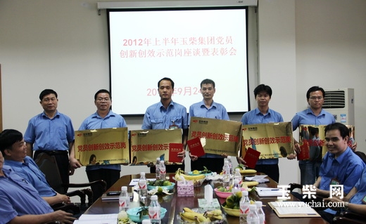 9月24日下午,玉柴集团公司党委召开2012年上半年党员创新创效示范岗座谈暨表彰会,会议总结了2012年上半年党员创新创效示范岗的活动情况,围绕在创新创效示范岗中存在的问题、改进措施及如何构建创先争优的长效机制提出了新的措施,同时表彰了获奖的14个党员创新创效示范岗。