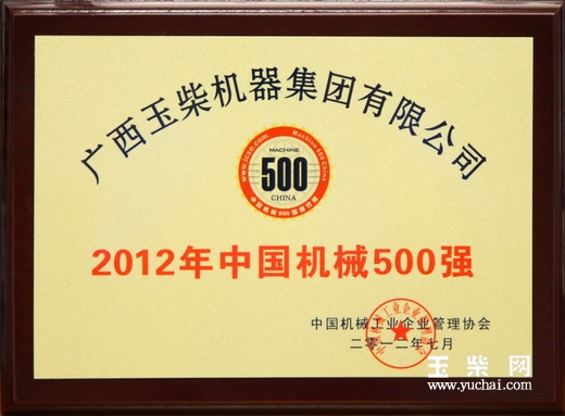 2012年《中国机械500强研究报告》暨《世界机械500强》发布会日前在北京隆重举行,玉柴集团居2012年中国机械500强第18位。同时发布的2012年《世界机械500强》中,有82家中国机械企业入选。此次活动是由中国机械工业企业管理协会主办,机械工业经济管理研究院、世界经理人集团、中国机械网联合承办。