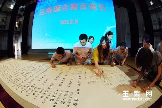 集团基层党组织负责人,集团各单位文化专员,以及40名新员工代表依次在写满玉柴文化理念的书法作品上签上了自己的名字,表达了他们对玉柴文化理念的认同和支持。