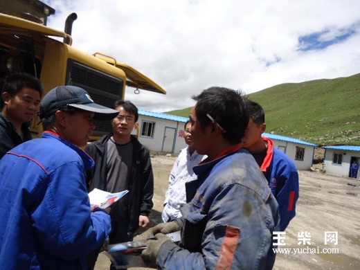 为了答谢玉柴重机用户,了解西藏重机市场,了解产品质量情况以及宣传重机服务月精神,玉柴西藏办事处服务经理张海明连同西藏金路通服务站人员一行5人,顶着强紫外线的烈日,冒着刺脸的寒风,来到海拔5100多米的拉萨德庆普信铁矿场的工地上。虽然路程只有一百二十多公里,但是由于山路崎岖,从早上10点钟出发,经过了4个多小时的颠簸,到下午2点多,大伙才到达目的地。