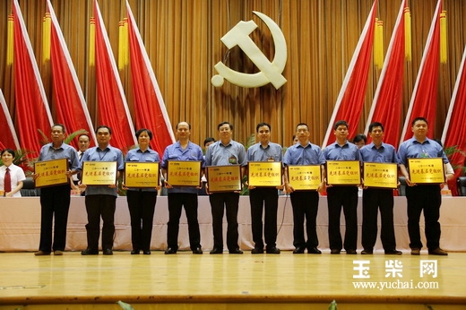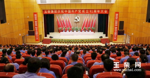6月27日上午,玉柴集团庆祝中国共产党成立91周年大会在文化中心隆重举行。大会主席台两侧的巨幅标语“艰苦创业 赶超跨越 激发活力建功十二五”“坚守信念 创先争优 鼓足干劲献礼十八大”表达了玉柴集团3000多名共产党员对党的深厚情怀。