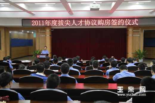 6月25日,玉柴机器股份有限公司在动力大厦举行2011年度拔尖人才协议购房签约仪式,35名拔尖人才分别与公司签订拔尖人才协议购房服务协议,每人将获得公司20万元以上(购房建筑面积120平方米以上)的购房补贴。