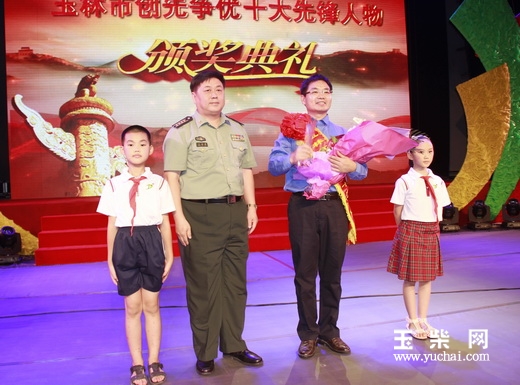 6月19日晚,由中共玉林市委员会主办的“先锋力量--玉林市创先争优十大先锋人物”颁奖典礼在市人民大会堂隆重举行,市委书记、市人大常委会主任金湘军,市长韩元利等领导出席了颁奖典礼。玉柴工艺装备厂池昭就当选玉林市创先争优十大先锋人物,市委常委、玉林军分区司令员王志强为其颁发奖杯。