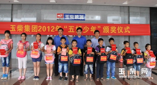 5月31日,在“六一”儿童节即将到来之际,为了让孩子们度过一个愉快的节日,玉柴集团分别举行了2012年“五好少年”颁奖仪式和2012年“爱心超市”捐赠仪式,陈铭豪等57位同学获得玉柴集团2012年度“五好少年”荣誉称号,来自工艺装备厂的困难职工子女唐一鸣等39人分别领取了价值300元的捐赠礼物。