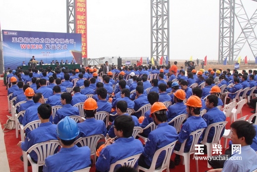 周孙海在致辞中说,多年来,中国造船行业的大功率发动机70%依赖于国外进口,严重制约了中国船舶工业的发展;今天,玉柴作为中国绿色动力的领跑者,积极响应国家《船舶工业调整和振兴规划》,毅然挑起振兴中国船舶工业的大梁,主动参与国际竞争,通过与全球顶级船用柴油机制造商瓦锡兰公司强强联合,成功进军低速船机市场,逐步形成高、中、低速全系列船用发动机产品链,全力打造专业船舶动力,成为了船舶动力的专业供应商。即将发运的全球首台低速机W-6X35,就是第一台由中国新建工厂完成生产的全球全新设计型号的低速机,掀开了中国船舶工业发展的新篇章。同时,它的起运也标志着玉柴船动成功得到了市场和客户的认可。