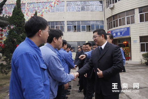 大年初九上午,受董事局主席晏平委托,玉柴集团公司总裁古堂生率领高管团队在集团公司大门口迎接职工上班,并到广西玉柴物流集团有限公司、玉柴华原机械(玉林)有限公司、广西玉柴动力机械有限公司等子公司向职工拜年。玉柴机器股份有限公司总经理吴其伟率领高管团队在股份公司大门口迎接职工上班,并到工程研究院、产品应用开发部、规划总部、二发厂、冷加工厂、配件公司、客户服务中心等单位向职工拜年。