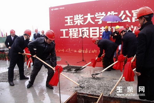 1月12日上午,玉柴大学生公寓封顶仪式在其顶层举行,玉柴集团公司董事局主席晏平、总裁古堂生,玉柴机器股份有限公司总经理吴其伟、党委书记李天生,玉柴集团公司董事局主席助理曾诗强,玉柴机器股份有限公司副总经理梁清延与桂企置业有限公司董事长陈业林一起为公寓封顶完成了最后一道工序,标志着这栋高29层、93米,总建筑面积47000平方米的玉柴大学生公寓顺利封顶。