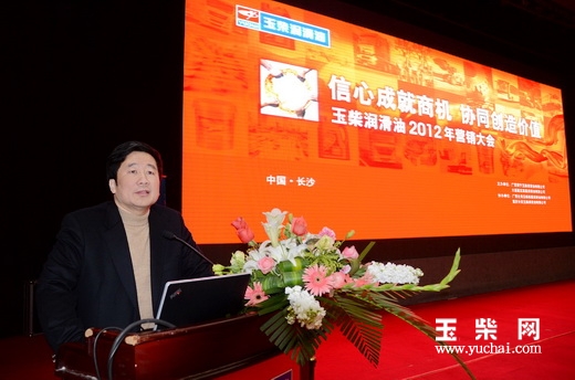 王利民在大会上做了2012年市场分析报告,并提出了与玉柴润滑油公司合作的策略。