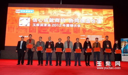1月6日,玉柴润滑油公司在湖南长沙召开2012年营销大会,大会主题为“信心成就商机,协同创造价值”。全国各地的经销商180多人济济一堂,总结经验,共谋发展大计。玉柴集团公司董事局主席晏平出席了营销大会。玉柴机器股份有限公司董事会秘书韩义勇、股份有限公司销售公司副总经理王利民,以及玉柴机器专卖发展有限公司相关领导参加了会议。