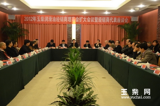 在当天下午召开的经销商理事会扩大会议上,润滑油公司董事长谢裕强首先向理事会通报喜讯:经过润滑油公司全体经销商的努力,润滑油公司克服今年市场的不利困境,用不满一年的时间顺利完成全年经营目标30.5亿元的销售收入,预算目标也全面完成,在玉柴集团子公司中排位第四。大会还选举了新一届理事会成员。理事长刘海川代表理事会作了2011年理事会工作报告,报告中指出,2011年理事会成员单位在玉柴的大力支持下,润滑油销量占玉柴润滑油公司销售总量的70%左右,成为了玉柴润滑油销售系统的核心力量。今年将继续争取保持良好态势,并带动全体经销商全力完成润滑油公司下达的销售任务。