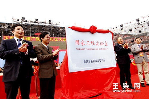 经国家发改委批准,代表我国内燃机行业最高水平的高效节能环保内燃机国家工程实验室于2011年11月正式落户玉柴集团。大会举行了 “国家内燃机工程实验室”揭牌仪式。自治区党委常委、自治区政府常务副主席黄道伟,中国机械工业联合会会长王瑞祥,中国工程院院士、上海船用柴油机研究所所长金东寒,玉柴集团公司董事局主席晏平共同为“国家内燃机工程实验室”揭牌。