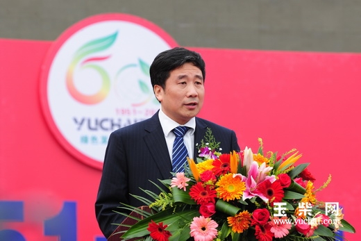 玉林市委书记金湘军代表玉林市四家班子和全市671万人民对玉柴集团建厂60周年表示热烈的祝贺,对玉柴60年来的发展给予了充分的肯定和高度的评价。金湘军说,建厂以来,玉柴集团自强不息、艰苦创业,经历新了中国初建的激情岁月,见证了社会主义建设的伟大实践,沐浴了改革开放的浩荡春风。在振兴民族工业的道路上,阔步前进,实现了由两万元起步到千亿航母起航的跨越式发展。玉柴的成长壮大,是玉林企业在市场经济大潮中,乘风破浪前进,在国际经贸舞台上大显身手的精彩缩影,也是玉林企业开拓创新、做大做强的光辉典范。玉柴是玉林的骄傲,也是广西的骄傲,中国的骄傲。在未来的发展中,市委市政府将继续举全市之力,全力支持和服务于玉柴做大做强。