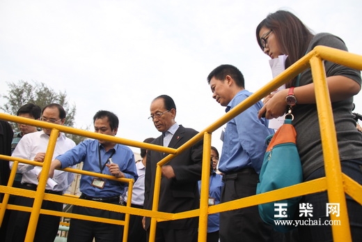 张文台一行先后参观了重机加工车间、重机装试车间、污水处理站、铸造中心,就玉柴推动工业固体废物污染防治和资源结合利用进行了详细的了解。一直以来,玉柴高度重视环境治理、节能减排工作,深入开展技术改造,积极推进管理创新,加强工业固体废物污染防治,实行油泥干化处理、危险废物无害化处理,减少污染物产生;实现铸造废砂再生再利用,减少固体废物产生;对含油废破布进行清洗、烘干,减少危废排放;推广利用节水技术,实现中水回用,从而实现了资源综合利用的最大化,收到了经济社会效益好、社会认可度高、环保认可度高、品牌知名度高的良好效应,推动了企业的可持续发展。张文台对玉柴推动工业固体废物污染防治和资源结合利用取得的新成效给予充分肯定,当看到经污水处理站处理出来的中水能直接用来浇花都没有问题后,很是欣慰,并详细了解了玉柴中水回用情况。