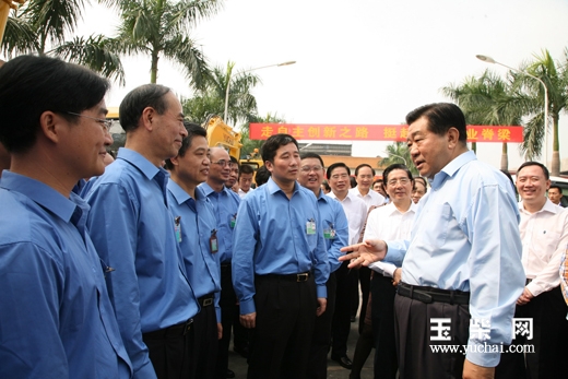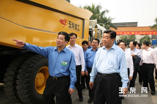 11月19日,中共中央政治局常委、全国政协主席贾庆林在自治区党委书记郭声琨等领导的陪同下,带着深切的关怀来到玉柴,详细了解玉柴自主创新发展情况,对玉柴60年发展所取得的成就表示赞赏,并就企业发展和技术创新做出重要指示,勉励玉柴攻克更多的核心技术,打造世界一流发动机生产企业。