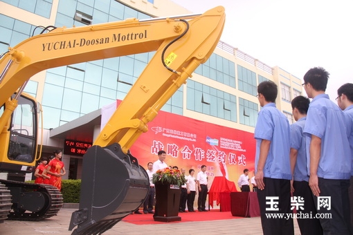 韩国斗山株式会社(MOTTROL)社长尹泰圣在致辞中讲到,玉柴重工作为中国工程机械行业顶尖领头企业之一,二十多年以来,为中国挖掘机行业的发展做出了诸多的贡献,特别是小型挖掘机领域在海内外得到了普遍的好评,也为了强化产品系列付出了很大的努力,是很有实力的企业。韩国斗山株式会社(MOTTROL)是韩国工程机械用液压件的领头企业,为了满足不断增长的中国市场的需求,2011年7月在江阴举行了中国工厂的奠基仪式。通过此次签订战略合作协议,玉柴重工可以在中大挖以及全系列的液压件采购上得到更稳定的支持。韩国斗山株式会社(MOTTROL)在中国事业的开始阶段,能够和本土顶尖企业之一的玉柴重工签订战略合作协议,是扩大中国工厂事业和知名度的有力支持。希望双方进一步扩大战略合作范围,为在各自领域迈向中国第一梯队、世界第一行列,进一步坚实合作关系。