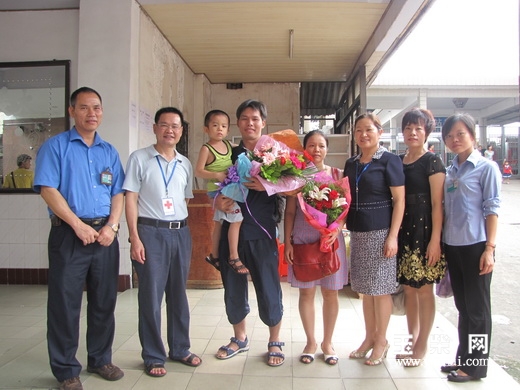 7月13日,玉林市第二例造血干细胞成功捐献者??玉柴股份公司发动机一厂员工廖荣富与妻儿从邕返玉。刚下火车的廖荣富就受到了玉林市红十字会工作人员、玉林市造血干细胞志愿者以及玉柴股份公司发动机一厂工会领导的热烈欢迎,《玉林日报》、《玉林晚报》等媒体也纷纷进行跟踪报道。