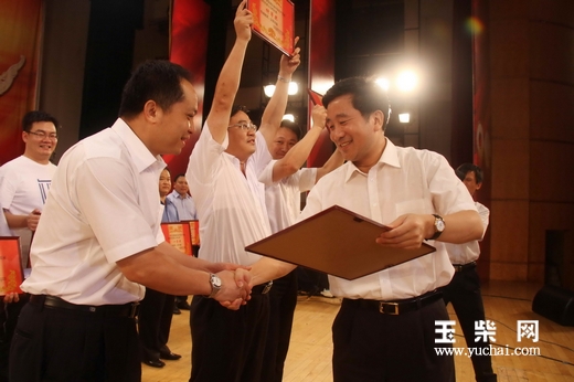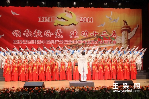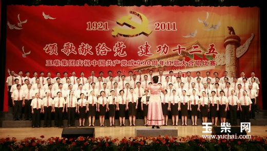 颂歌献给党,建功十二五。7月1日晚,玉柴集团庆祝中国共产党成立90周年红歌大合唱比赛在玉柴文化中心隆重举行,来自集团各单位的18个参赛队用飞扬的歌声、动听的旋律,激情万丈颂扬伟大的党、伟大的祖国。玉林市总工会党组书记、副主席卢道东,玉柴集团公司党委书记、董事局主席晏平等领导一同观看了比赛。