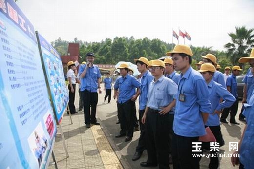 为了庆祝建党90周年、玉柴建厂60周年,6月14日至16日,玉柴集团组织了职工代表、党员代表、团员代表、离退休职工代表、30年工龄以上的在职员工代表共1000人开展了“玉柴人看玉柴”的参观活动。玉柴集团公司党委副书记股份公司党委书记李天生、股份公司党委副书记郭德明、集团工会主席梁萍等领导参加了活动。