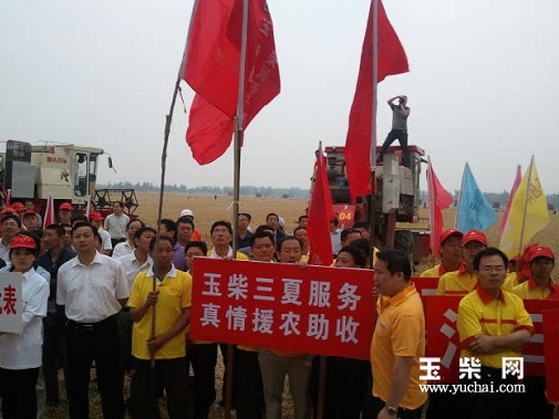 5月30日,2011年全国“三夏”小麦跨区域机收启动仪式在河南省南阳市唐河县桐寨铺镇隆重举行,标志着全国小麦由南向北大面积的跨区作业正式开始。国家农业部部长韩长赋、河南省委副书记、省长郭庚茂出席仪式并发表讲话。玉柴销售公司客户服务中心副主任杨家彬、河南办事处主任黄维斌带领南阳、周口、驻马店、郑州等地的服务站代表,组团参加了此次“三夏机收”仪式。