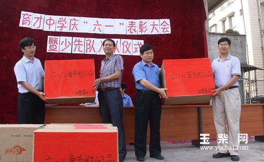 5月31日上午,李天生等领导来到育才中学体育场,为学校小学部的2700多名师生送上节日慰问礼物,同时为获得玉柴集团2011年度“五好少年”荣誉称号的职工子女颁奖。