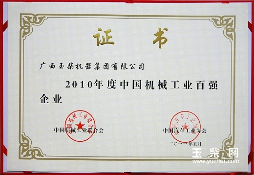 5月27日,“2011年中国机械工业百强企业汽车工业三十强企业信息发布会暨机械工业发展战略研讨会”在北京召开。会议发布了2010年度中国机械工业百强企业名单,玉柴集团排名第9位,比2009年度排名上升了1位。