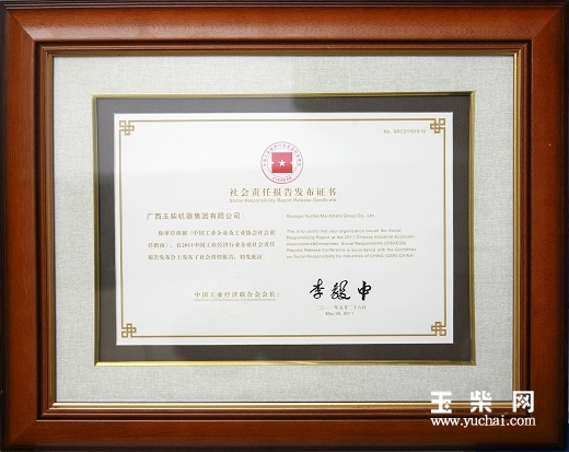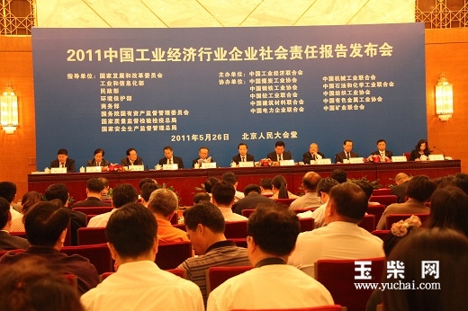 5月26日,由中国工业经济联合会主办的“2011中国工业经济行业企业社会责任报告发布会”在北京人民大会堂召开。玉柴集团参加了发布会并发布了《绿色发展,和谐共赢——玉柴集团2010可持续发展报告》,这是玉柴集团发布的第四份可持续发展报告。玉柴集团公司董事局副主席、党委副书记李天生作为七家发言单位代表之一在会上发言,并领取了社会责任报告发布证书。