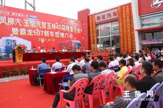 4月12日,玉柴物流公司玉柴汽贸玉林柳汽4S店在“岭南都会”玉林市隆重开业。玉柴集团公司董事局副主席、党委副书记李天生,东风柳州汽车有限公司副总经理宣颖、总经理助理李克平,玉柴物流公司董事长李志荣、总经理陈旭南,以及玉林市社会各界人士参加了开业仪式。