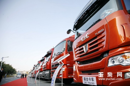 在2011年股份公司营销服务年会展出的装配YC6K发动机的联合卡车产品
