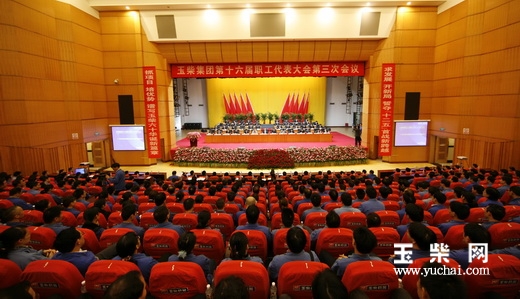 2月26日上午8时,玉柴文化中心唱响了雄壮激昂的国歌,玉柴集团第十六届职工代表大会第三次会议隆重开幕。到会的758名职工代表、特邀代表、列席代表欢聚一堂,共商发展大计、共谋和谐之策,为集团实现2011年400亿元目标和“十二五”末1000亿元目标建言献策。中共玉林市委副书记刘子福,玉林市总工会党组书记卢道东,玉林市国资委主任何发贤应邀出席大会。刘子福讲话,卢道东致贺辞。玉柴集团公司董事局主席晏平在会上作题为《培育优势,告捷首战,向集团六十华诞献礼》的讲话。