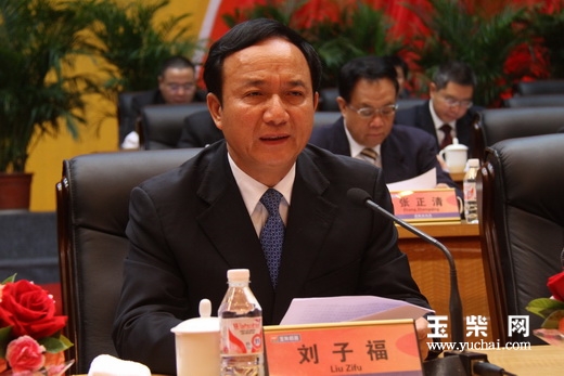 刘子福在讲话中对玉柴“十一五”期间取得的发展给予了高度的赞扬,对玉柴的发展提出了殷切的希望和要求。他说,“十一五”期间,玉柴通过科技创新、质量提升、文化创新,不仅顺利完成了“三年再造一个玉柴”的宏伟目标,更是创造了“5年再造2.5个玉柴”的光辉业绩,为推动玉林改革发展做出了突出贡献。进入“十二五”,玉林站在了一个新的发展起点上,玉柴作为玉林工业发展的一面旗帜,肩负着更有力、更有效地推动玉林市经济社会更好更快发展的重任,承载着全市650多万人民的期盼。市委市政府对玉柴的进一步发展壮大寄予了很大期望,并将进一步推进“强柴兴玉”战略,一如既往地举全市之力帮助玉柴做强做大,推动玉柴跨越发展。刘子福提出了三点要求:一是着力提升自主创新能力。希望玉柴全体职工着眼于新形势、立足新起点,自我加压,敢于赶超,人人为创新出计,人人为发展出力,进一步提高自主创新能力,使玉柴不仅有强大的制造力,而且更具强大的创造力。二是大力弘扬玉柴企业文化。玉柴的企业文化根基深厚,希望玉柴全体职工今后更系统地开展企业文化建设,最大限度地激发全体职工的创造热情和创新活力。三是全力打好“十二五”开局第一仗。希望玉柴职工紧紧围绕“十二五”战略目标,按照“保开局,抓项目,培优势”的经营方针,走好第一步,干好第一年,为“十二五”的后续发展奠定坚实的基础。