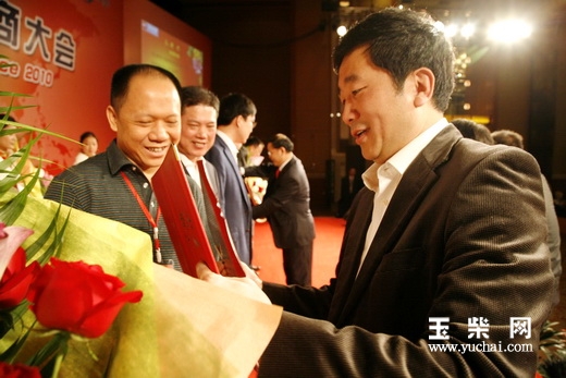 晏平(左)等玉柴机器股分有限公司领导给优秀供应商颁奖