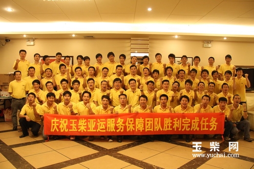 玉柴是亚运会交通配套服务单位中最早到位、服务人数最多的企业。在9月下旬玉柴最早完成和广州交委的对接,由公司总经理李天生亲自挂帅,派出了50多人的服务保障团队。保障团队分成21个小组在广州布下了一张全方位覆盖的服务网络,快速融入广州各个公交维修点,协助公交公司完成前期车辆检修排查,按要求在亚运期间轮值夜班逐一排查亚运用车等,重点做好混合动力车辆保障、亚运会重点检修点保障、新到车辆的重点检查、配件保障等工作,有效地将玉柴服务保障团队融入到各个公交保障团队当中,对广州各公交公司进行了有效的技术支持工作,形成了快速反应、团结协作的工作系统,经历了2个多月的努力,提供了高质量的保障服务。
