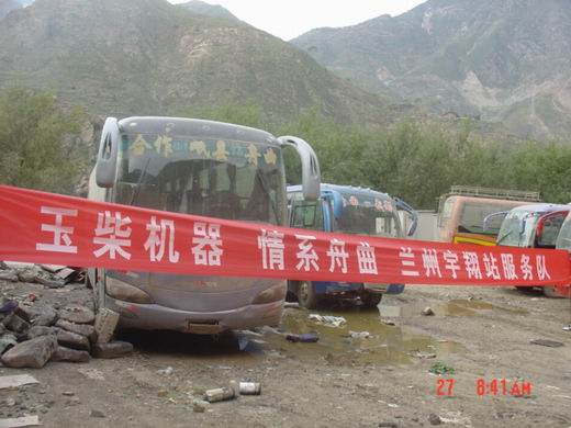 9月22号接到舟曲援建信息后,玉柴甘肃办事处立即组织召开会议讨论玉柴机器的售后服务事项,经请示,客服中心主任张廷指示:“玉柴机器,情系舟曲”,要全力支援舟曲重建。甘肃办事处将援建工作进行了统筹布置,具体如下:1、成立玉柴机器兰州宇翔站赴舟曲服务队,由主管站长1名,维修骨干2名,电控技术员1名组成;2、根据舟曲灾区的特殊服务情况,自备了干粮、饮用水、发烧药、感冒药和抗生素;3、根据舟曲的车辆进入情况和泥石流掩埋的故障车情况,准备了6万元相关配件;4、高举“玉柴机器,情系舟曲”旗帜,紧急赶赴舟曲支援重建。