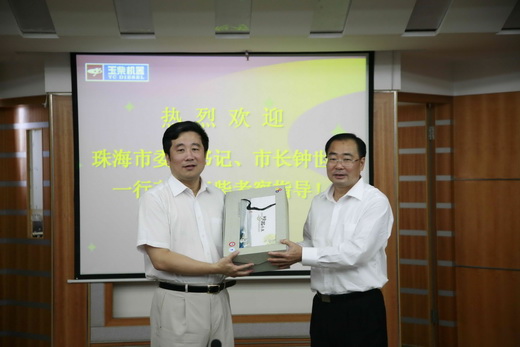 10月13日下午, 珠海市委副书记、市长钟世坚,珠海市委常委、常务副市长刘小龙,珠海斗门区委书记、区人大常委会主任、珠海富山工业园党委书记焦兰生一行访问玉柴,玉柴集团公司董事局主席晏平、总裁古堂生在玉林宾馆会见了钟世坚一行。次日上午,双方在动力大厦四楼会议室进行会谈。